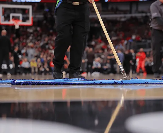 最后是大空间场馆的 “调控难题”。像联合中心这样能容纳2万余人的大型场馆,内部空间高达数万立方米,空气流动和温度分布很难做到绝对均匀。即便空调系统试图调节温湿度,也会因为空间过大出现 “局部死角”:比如靠近通风口的区域温度较低,远离通风口的区域湿度偏高,而篮球场地板又覆盖了大面积的 “低温区”,导致冷凝水只在比赛核心区域集中出现,其他区域却相对干燥,给处理工作增加了难度。