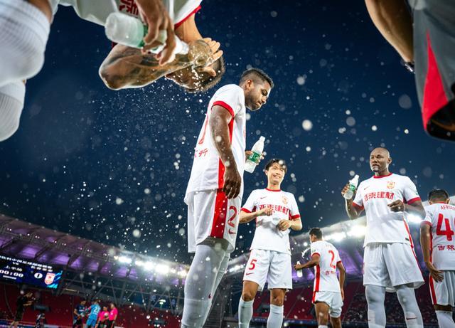 8月3日,长春亚泰队球员胡安·卡米洛(左二)在比赛前补水。 当日,在湖北武汉举行的2025赛季中国足球超级联赛第19轮比赛中,武汉三镇队主场0比0战平长春亚泰队。 新华社记者 肖艺九 摄
