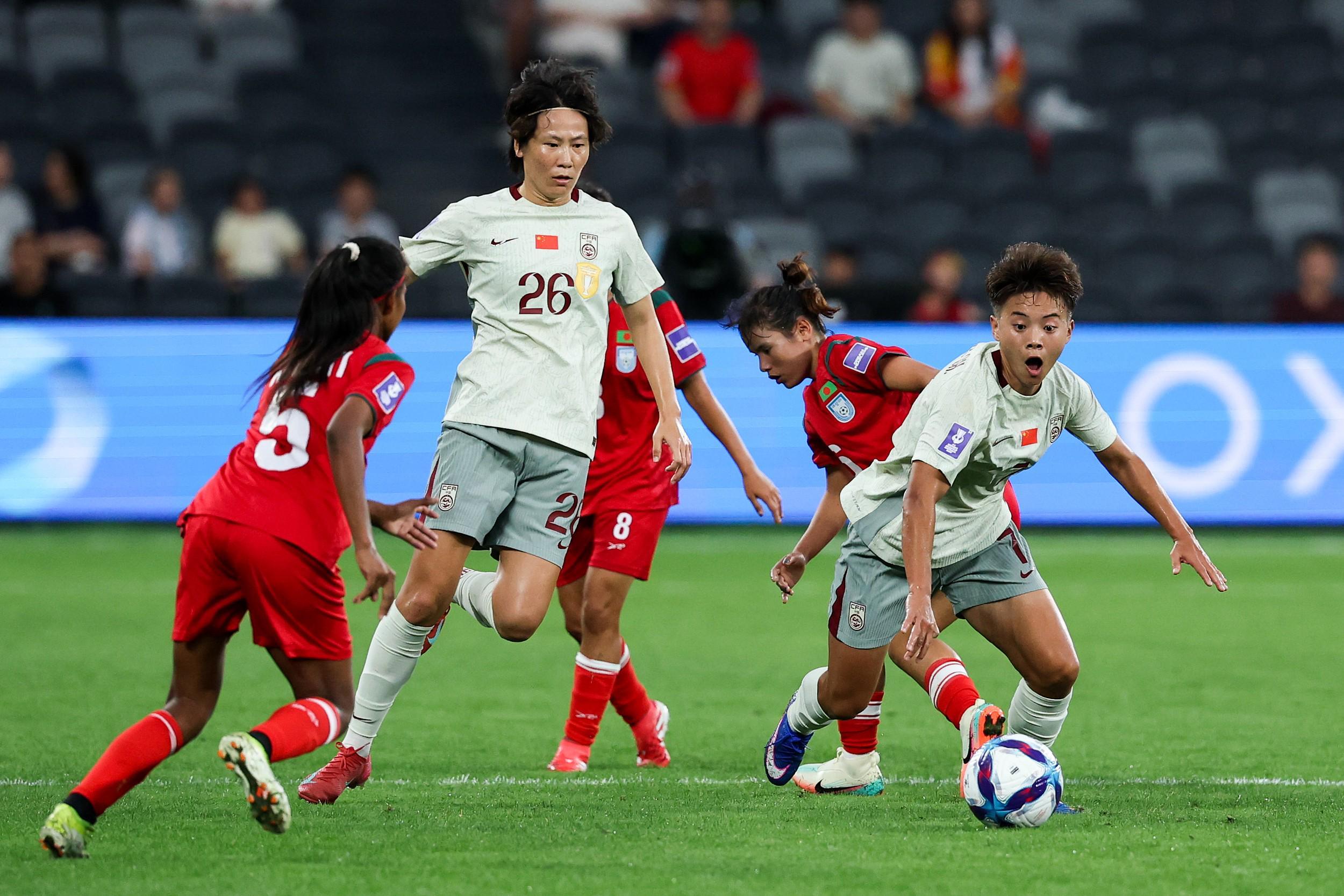 孟加拉国女足世界排名112,是本次女足亚洲杯12支球队里唯一一支新军,也是唯一世界排名100名开外的球队。中国女足世界排名第17,高对手95名,但是在这场争夺净胜球的关键战里,中国女足却没能打进足够的进球。